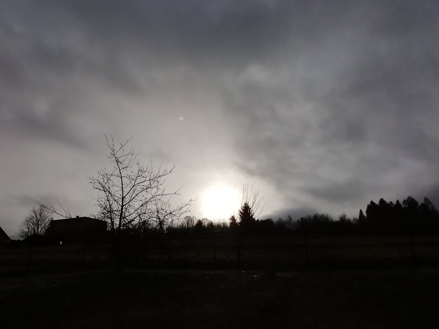 Slabá přeháňka, tlak 1023,3 hPa (slabý pokles), slabý JJZ vítr.