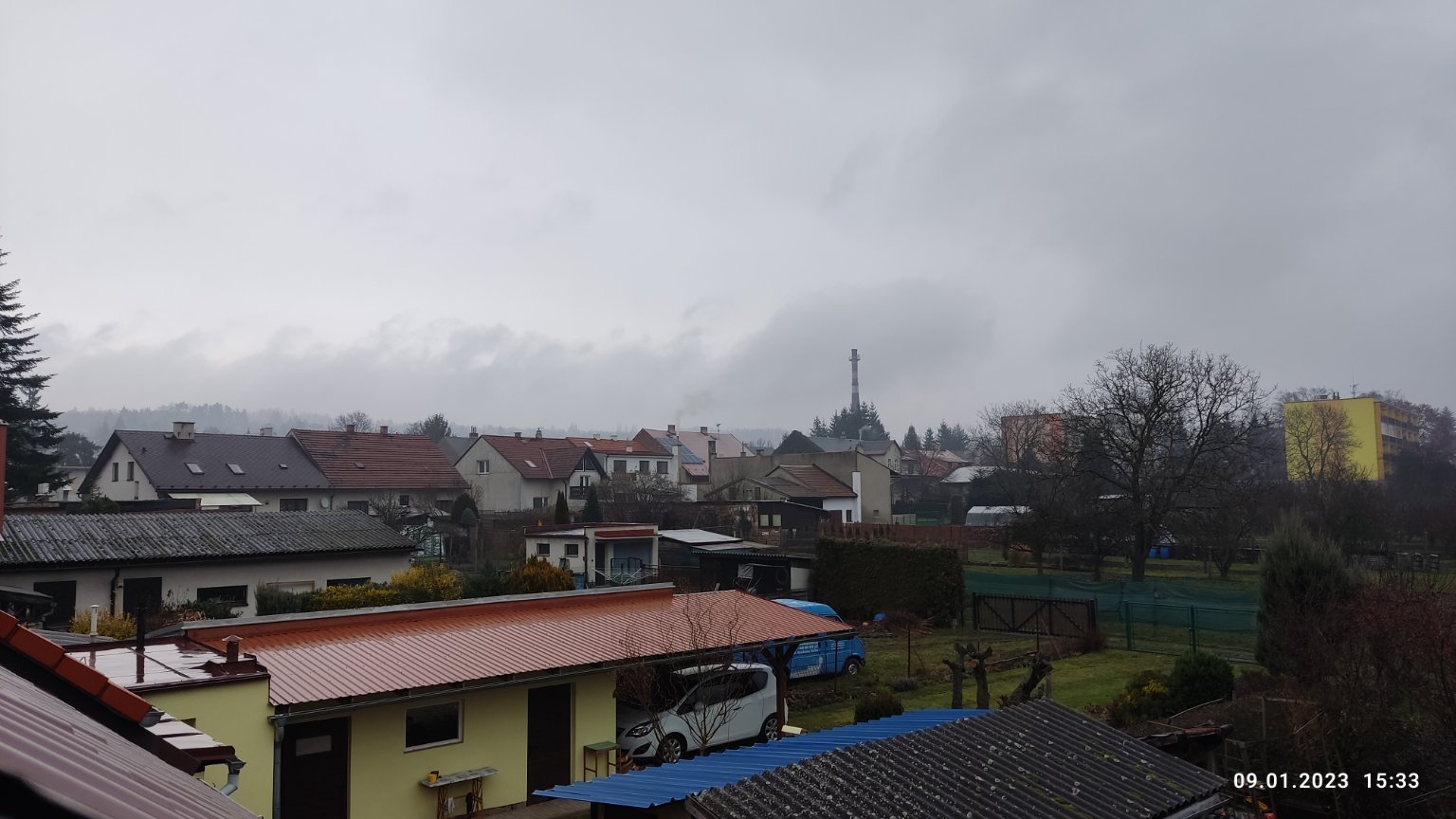 Momentálně beze srážek, tlak 1005,6 hPa (slabý vzestup), JZ vítr do 4 m/s.