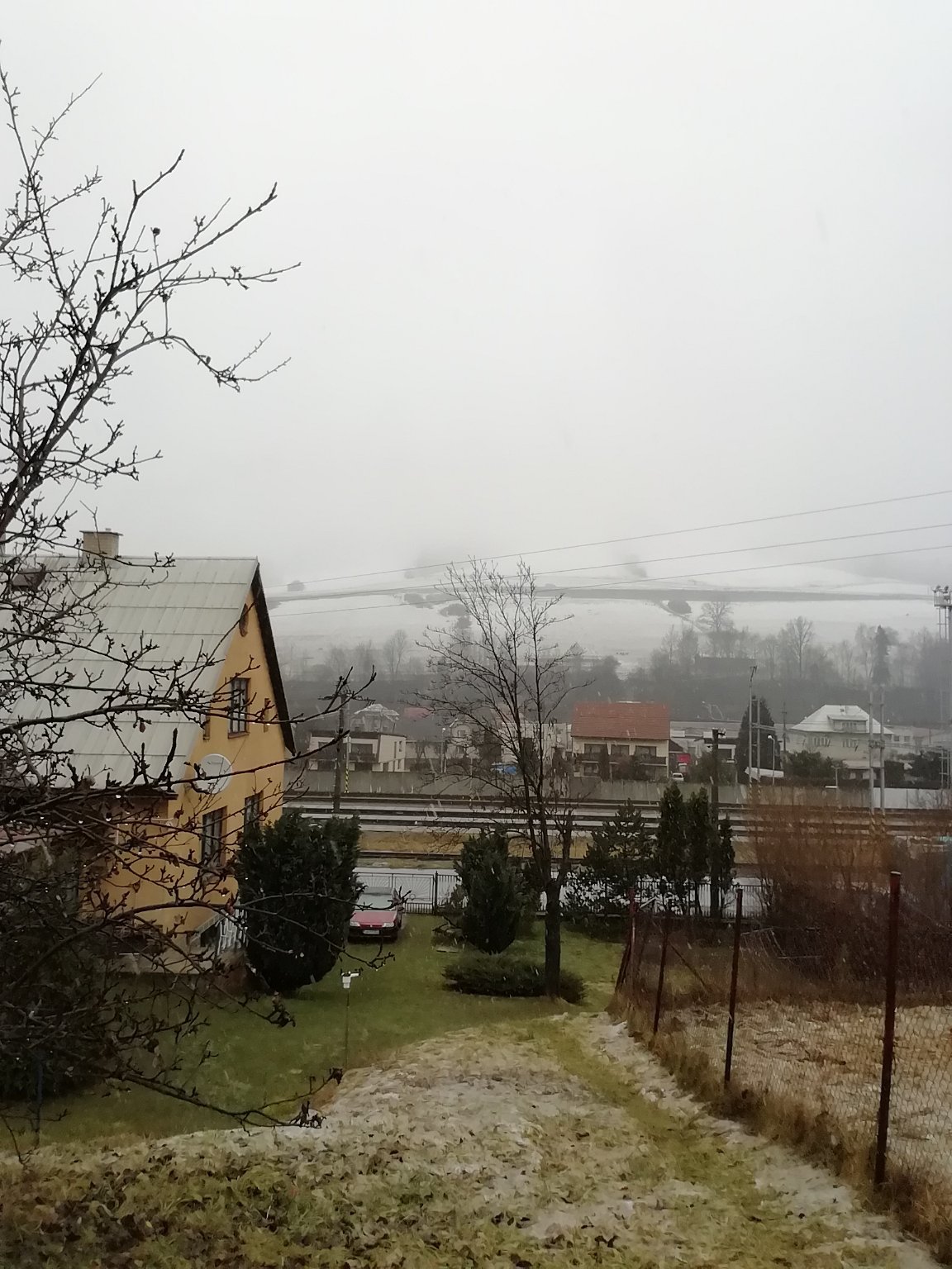 2,3°C, Slabý sníh s dešťem, Sníh: 0 cm. Dešť se konečně měni na sníh.