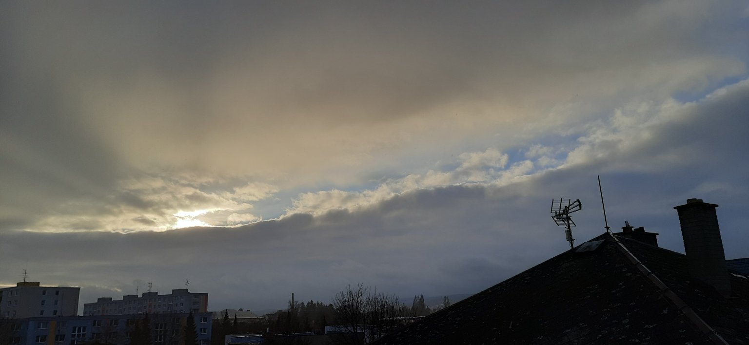 Vlhkost 71%, vítr slabý S, v nárazech dosti čerstvý (6,1 m/s). Zataženo, občas mírně sprchne. Půda má po jedenapůldenním nepřetržitém dešti již problém vsakovat.