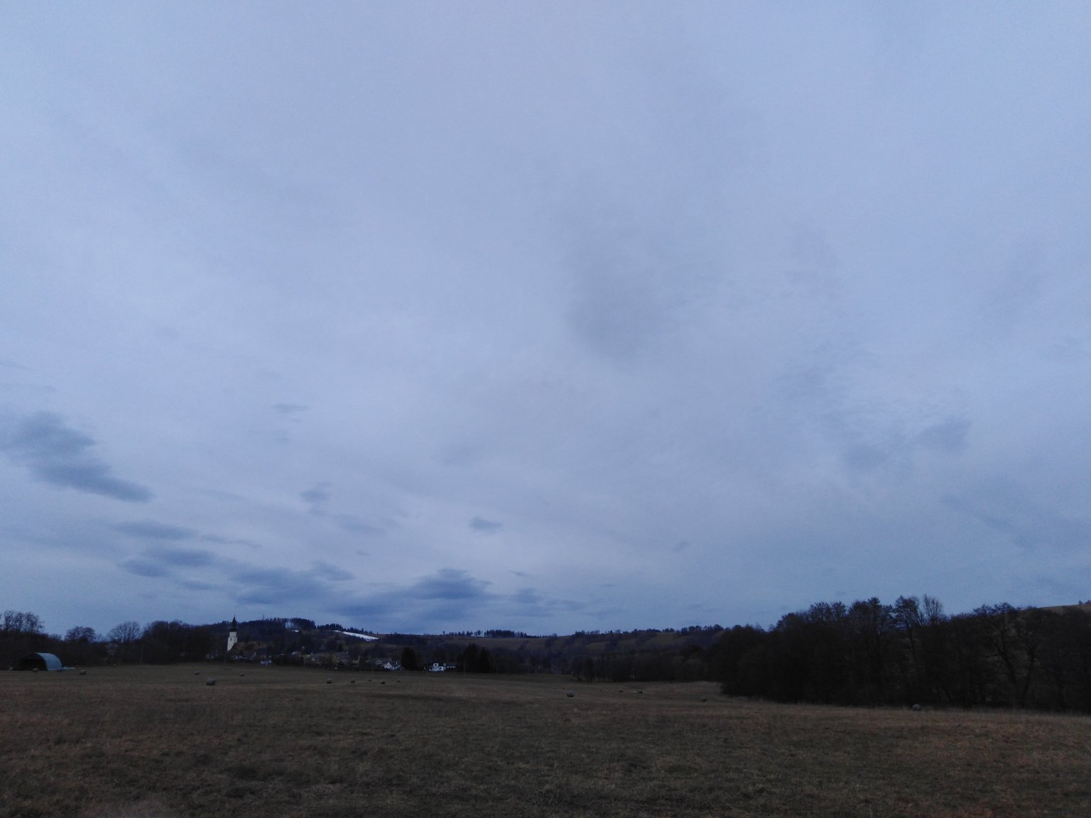 Oblačnosti ubylo, vítr slábne, vlhkost 59%. Pomalu se ochlazuje.