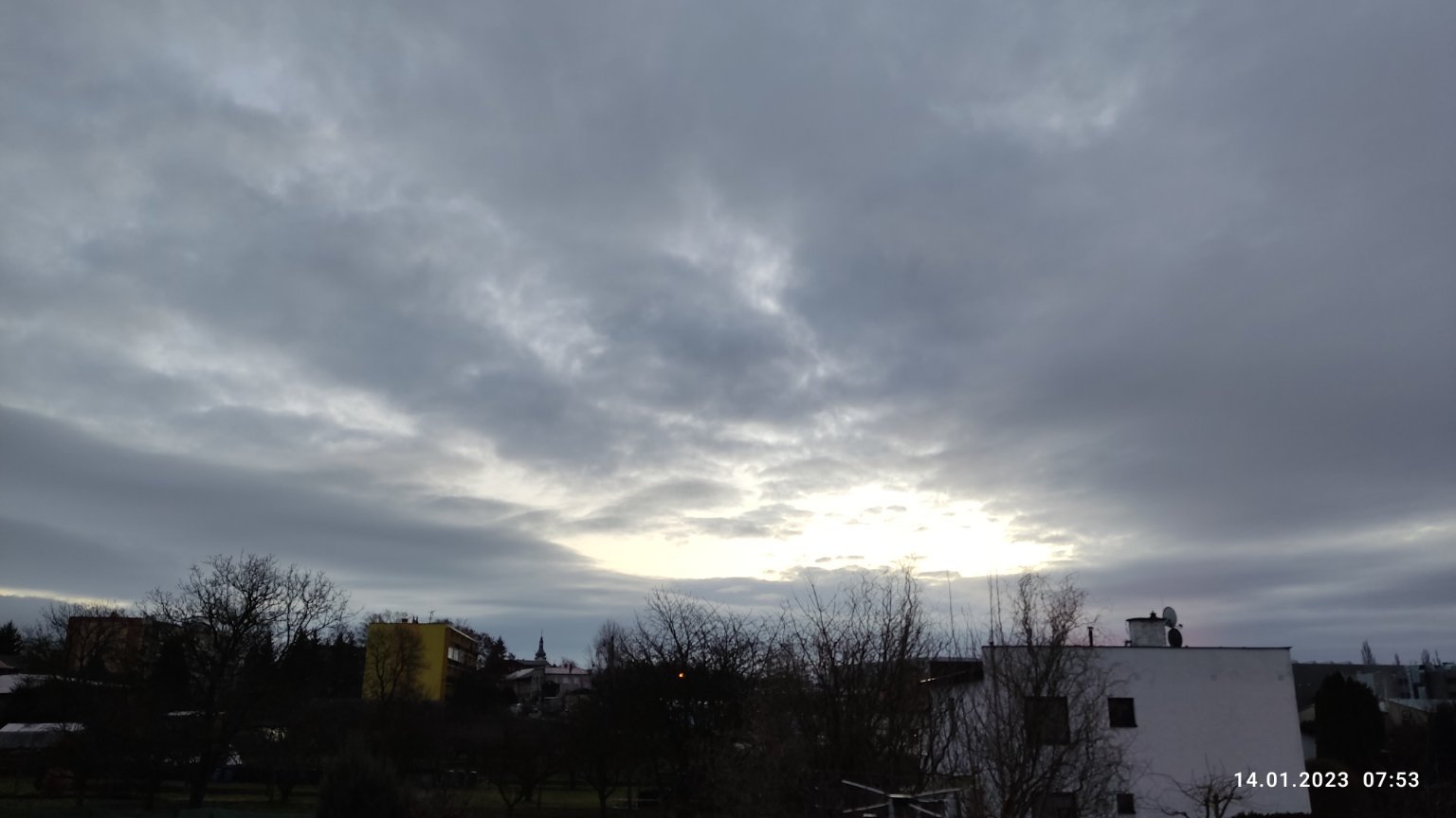 Oblačno, mírný jižní vítr, tlak 1018 hPa.
