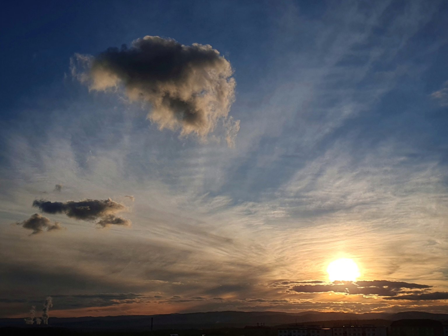 Polojasno, klidno, tlak 990 hPa.