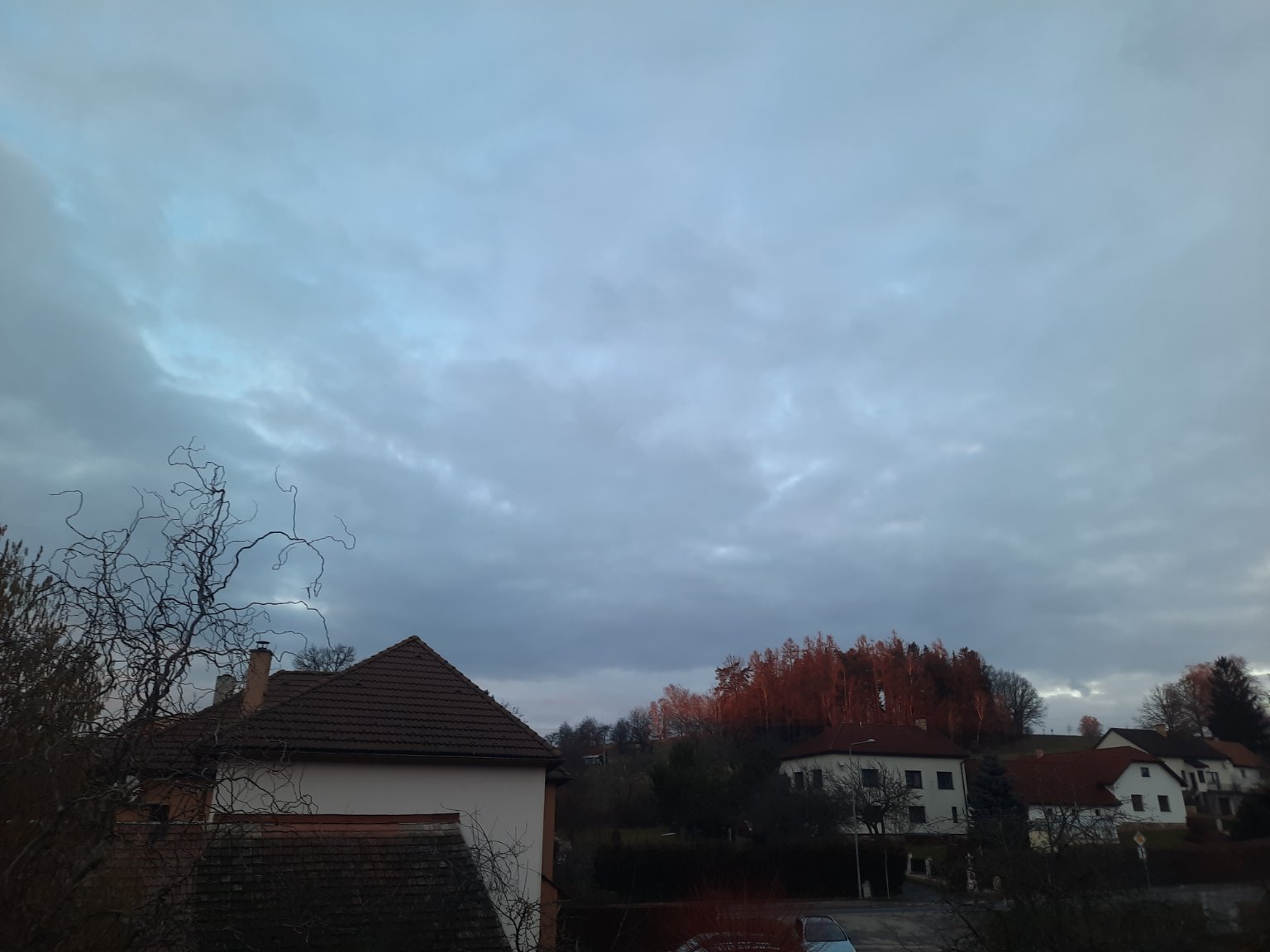Dnes poprvé se teplota dostala pod bod mrazu, tlak 997,6 hPa (mírný vzestup), slabý Z vítr.