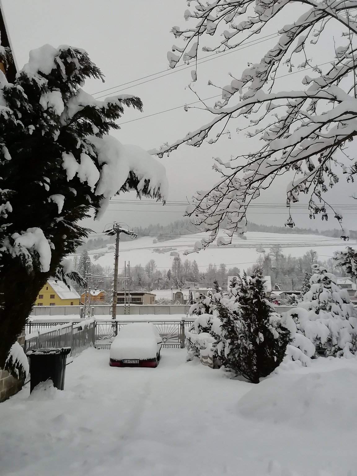 -2,1°C, Slabé sněženi, Sníh: 24,2 cm. Máme krasne Zimní ráno.