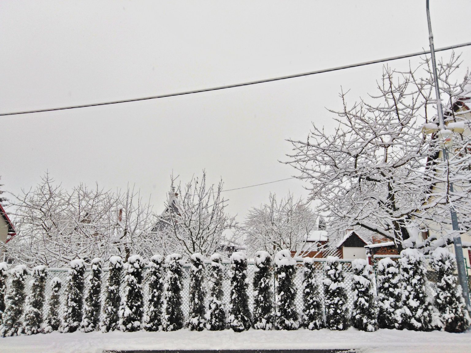 Rozhledna Jeřabina, slabě sněží, silný vítr