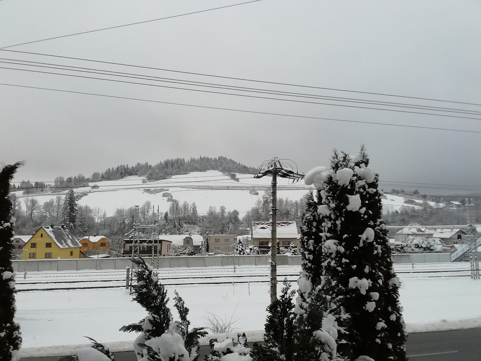 zataženo občas slabé drobné sněžení, -2°C, výška sněhu do 4cm / min. -3°C, max. -1°C