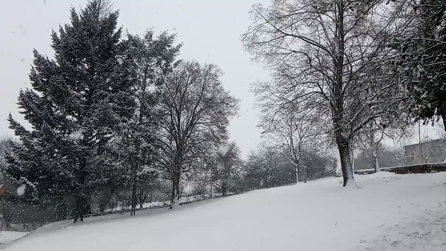 Tak přes noc lehce napadlo, už ale kape ze střech. Min T dnes -0,4°C. Vítr 1 m/s S. Vlhkost 94%