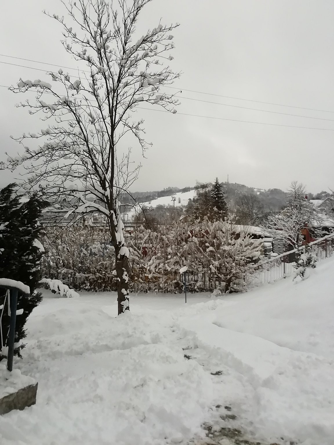 Intenzivní sněžení, vane mírný severovýchodní vítr, tlak: 1024hPa.