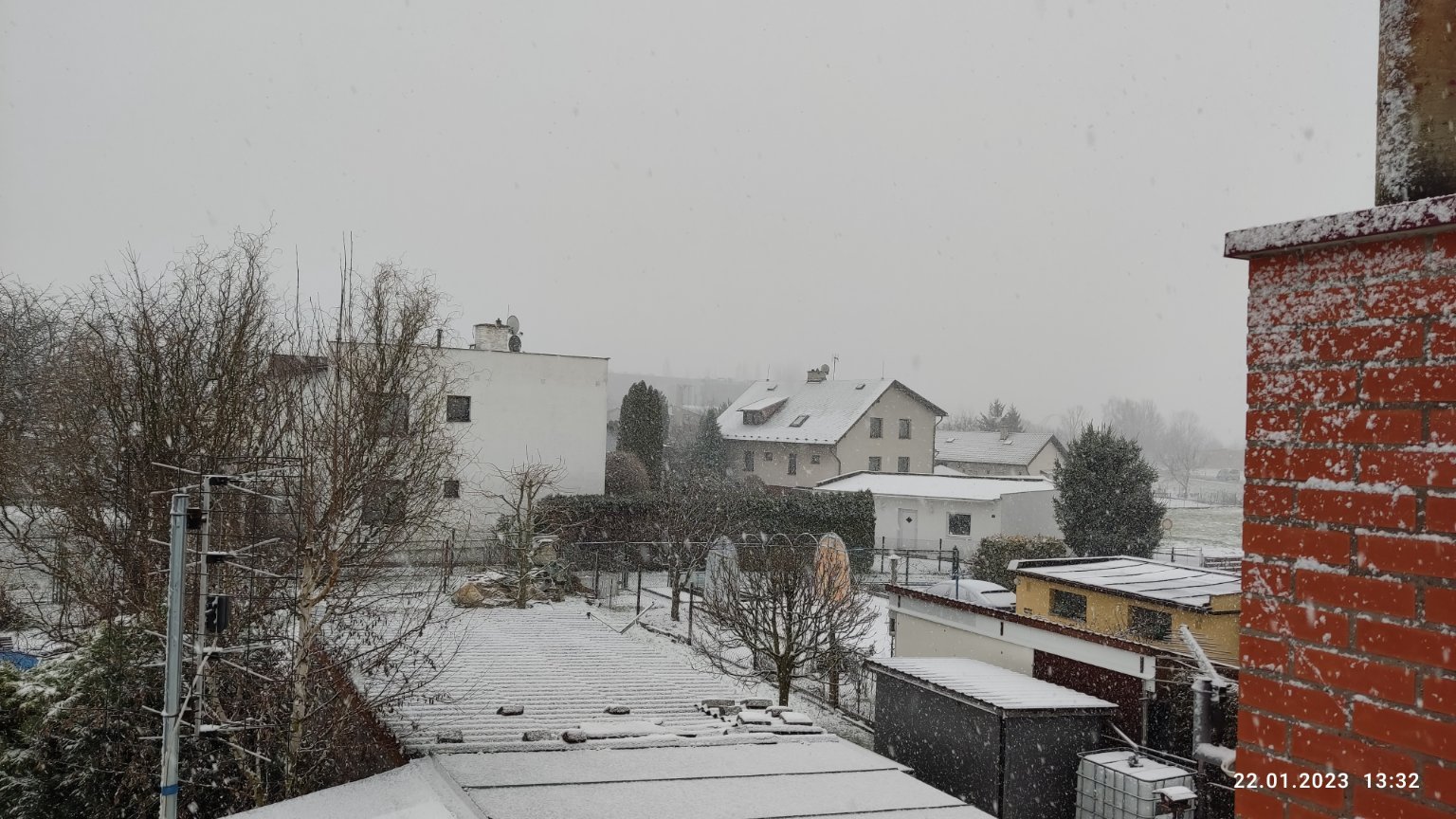 Aktuálně převažuje většinou zataženo a slabě, drobně sněží (sněhově mrholí) a fouká většinou slabý vítr