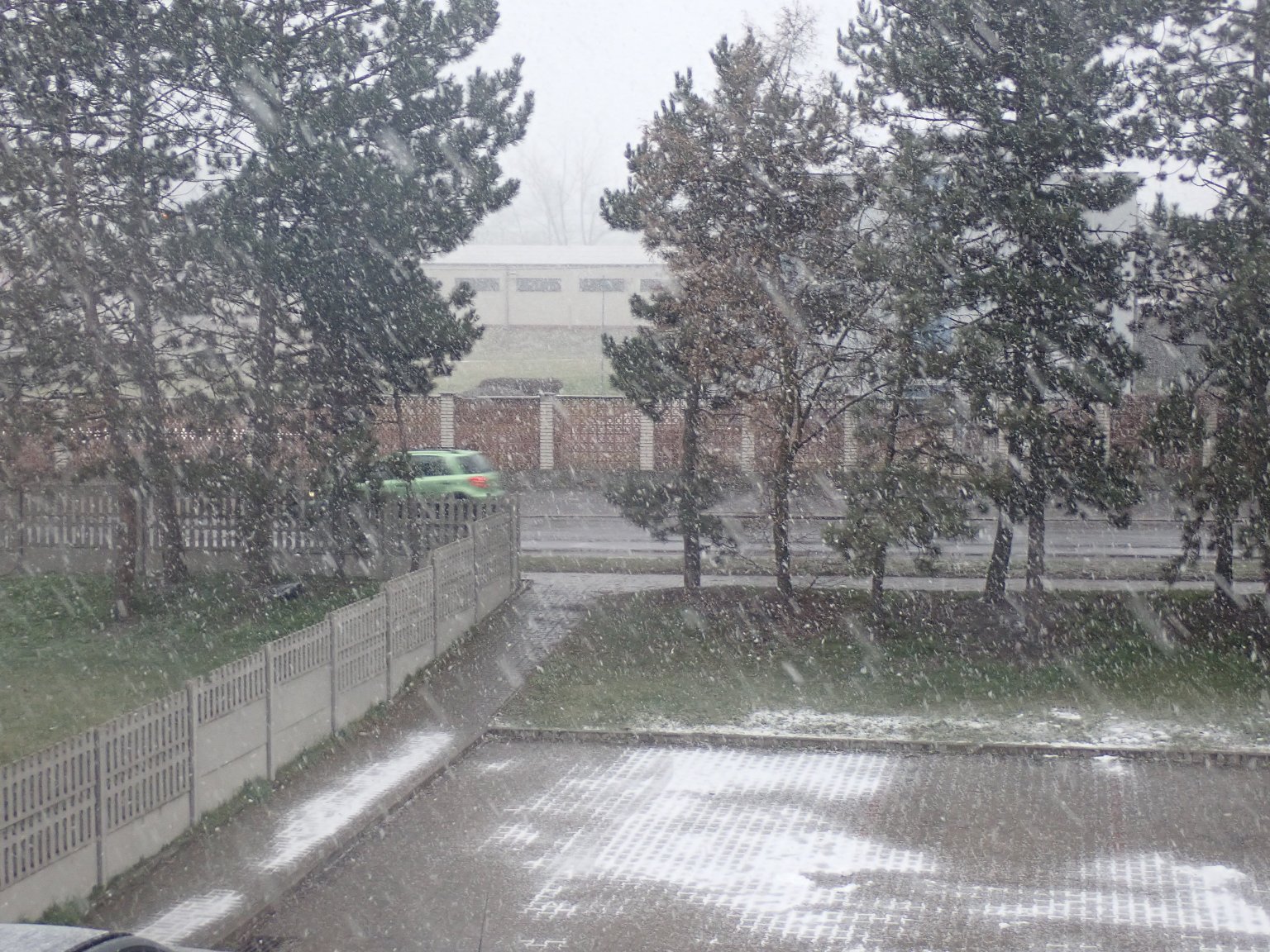 Zataženo, dopoledne a kolem 14.hod silnější vlna sněžení. Za dnešek 7 cm, celkem 23 cm. Foceno ve 380 mnm, v době nejsilnějšího sněžení cca 14:40.