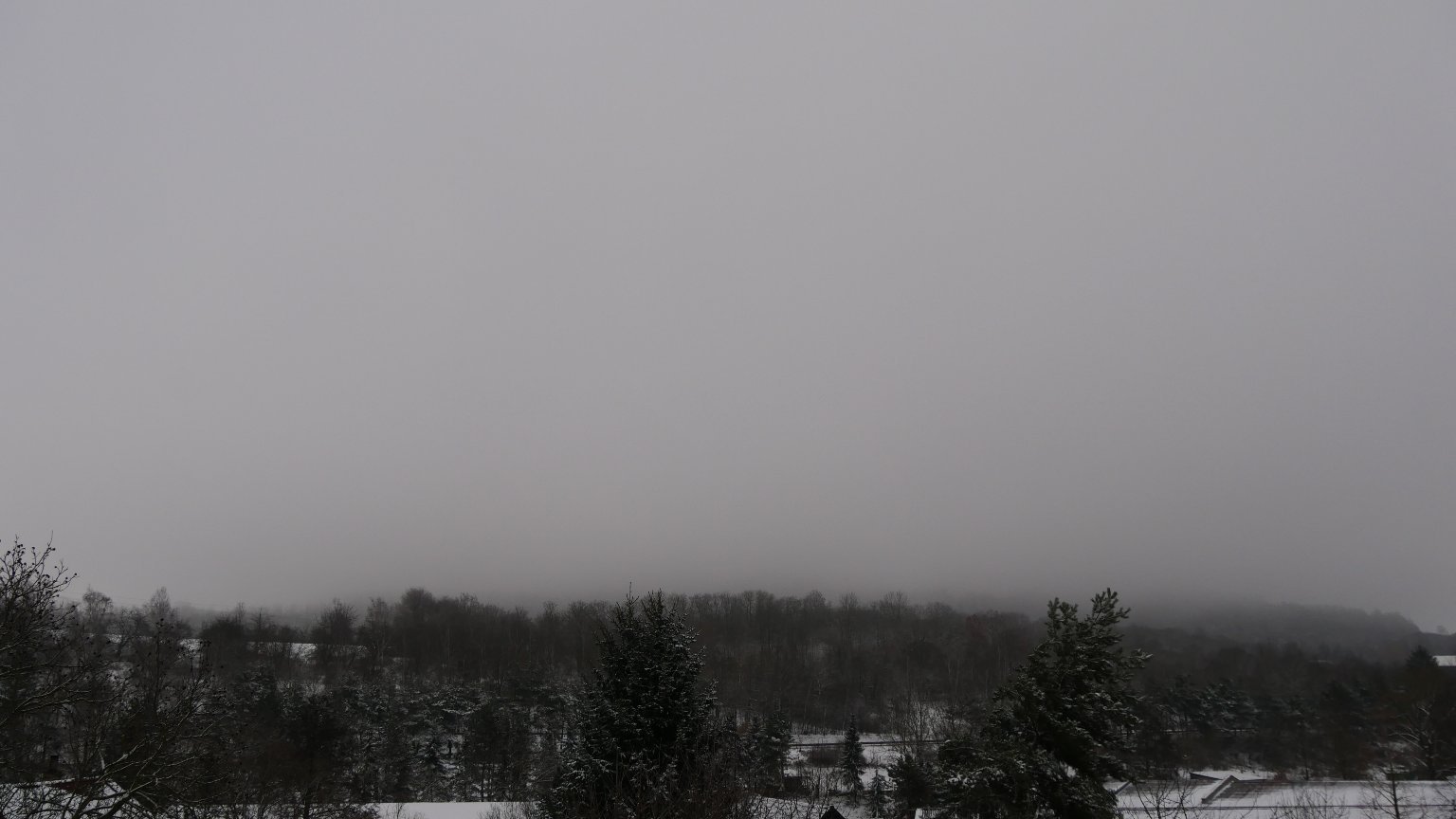 2023 01 23 v 10:12:54 sluníčko se snaží dostat z mlhy ven asi 14 cm sněhu -2°