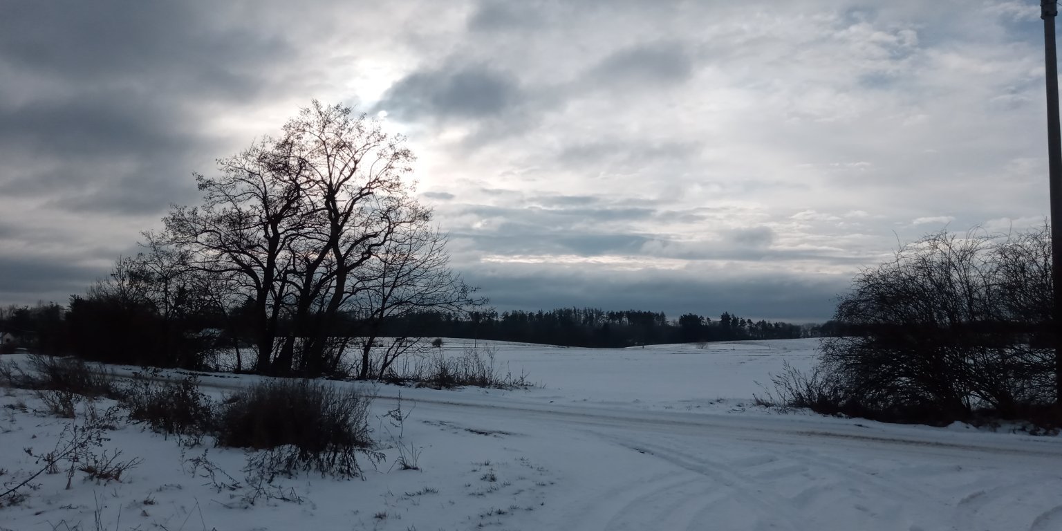 0,9°C, Silná až mirna mlha, Sníh: 14 cm. Na kopci viditelnost do ~0,5 km.