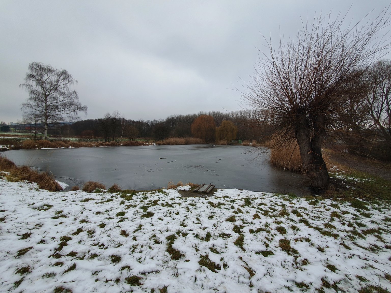 ve městě je sníh hodně nesouvislý, min. 0°C