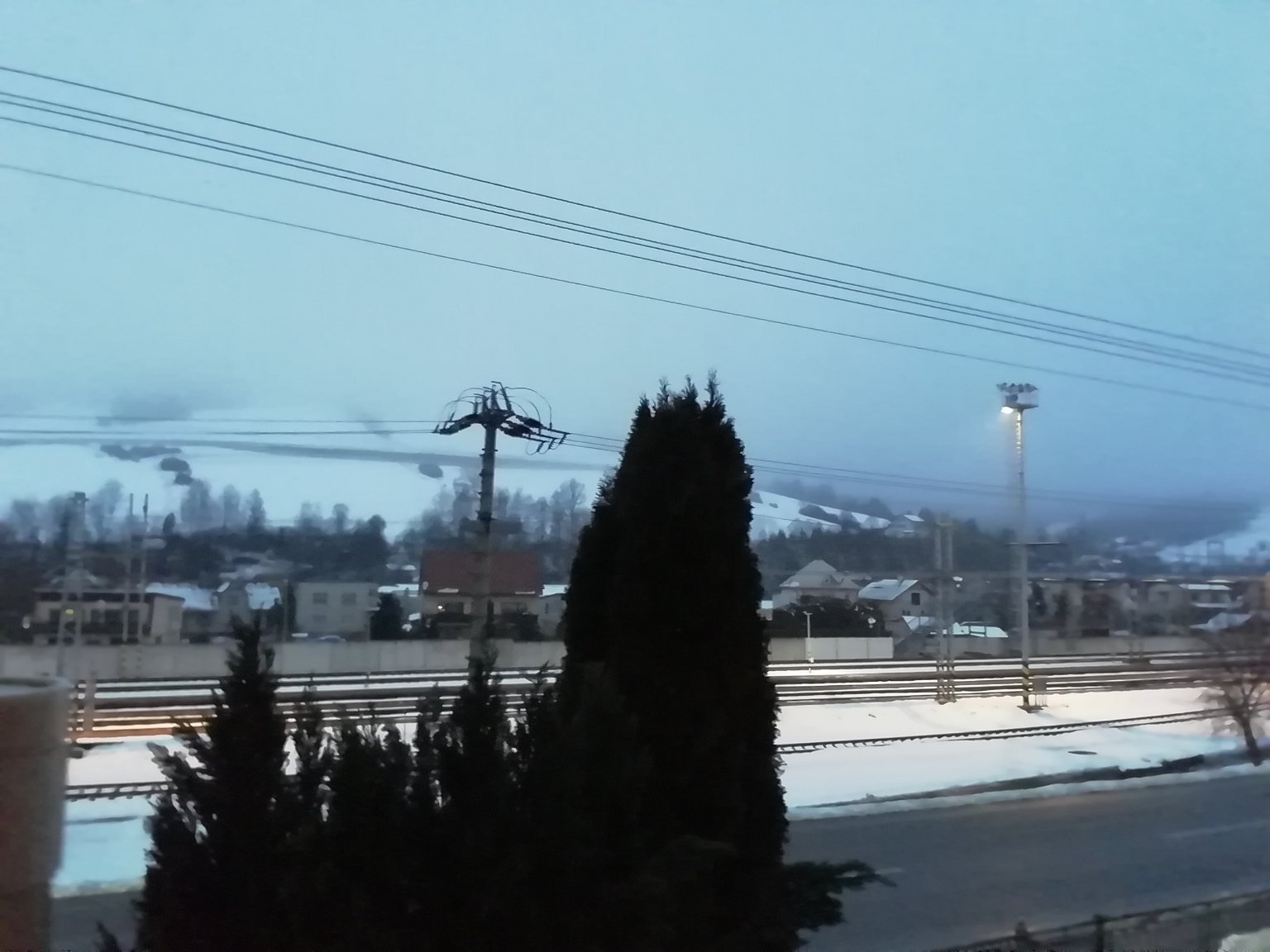 Aktuálně převažuje většinou zataženo a fouká většinou vánek, zůstává cca 5 cm sněhu