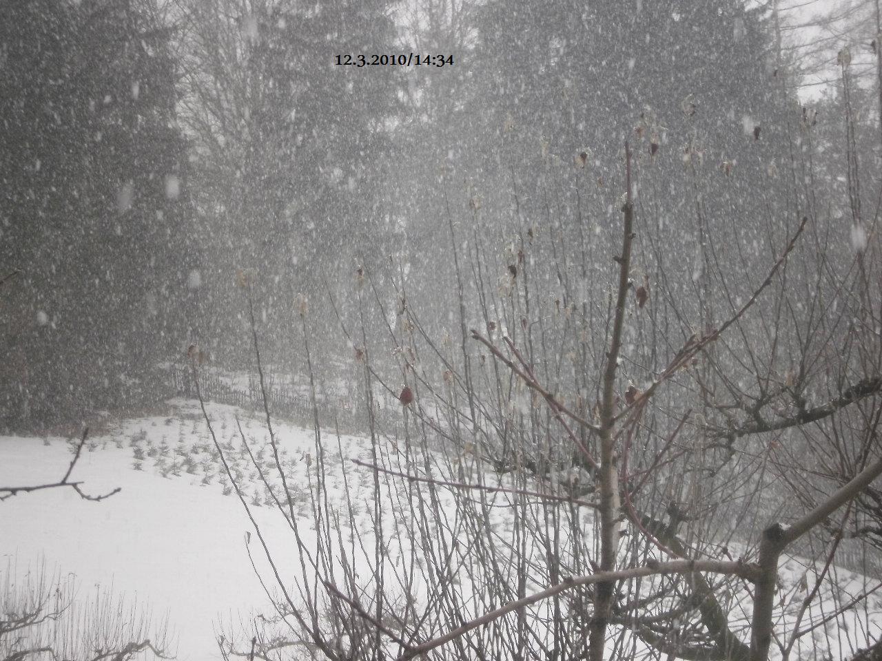 Začalo tady vydatně sněžit a přitom dneska tu u nás sněžit dle předpovědi nemělo