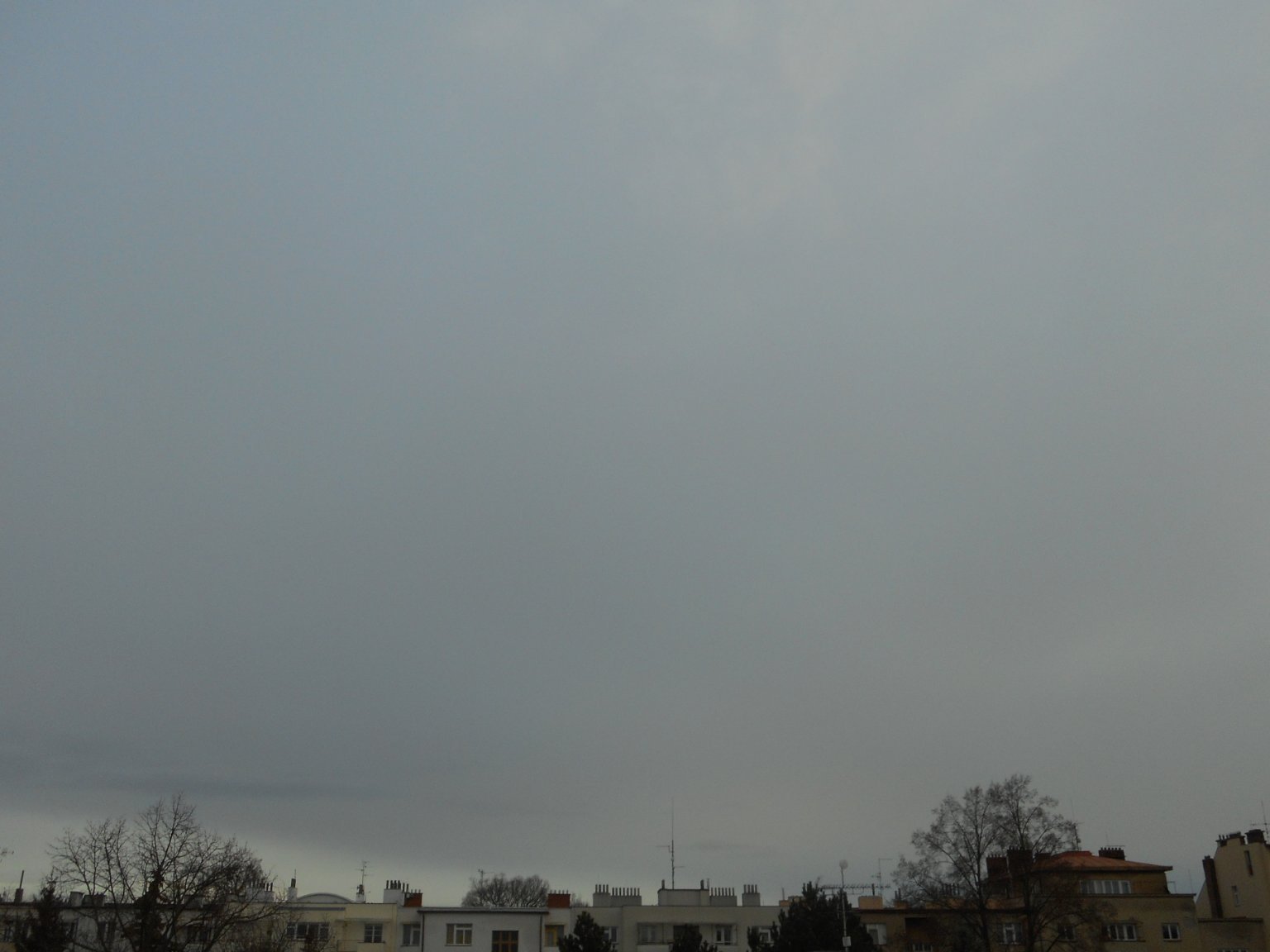 Oblačnost 95,9%, tlak 1015,12hPa→, poc.teplota -2,54°C, tepl.ros.bodu -0,49°C, rel.vlhkost 92,4%, abs.vlhkost 4,66g/m3, dosti čerstvý SZ vítr 304° 5,55m/s(4 Bft), včerejší průměrná teplota 1,15°C, délka dne 09:24:59, sluneční záření 34W/m2.