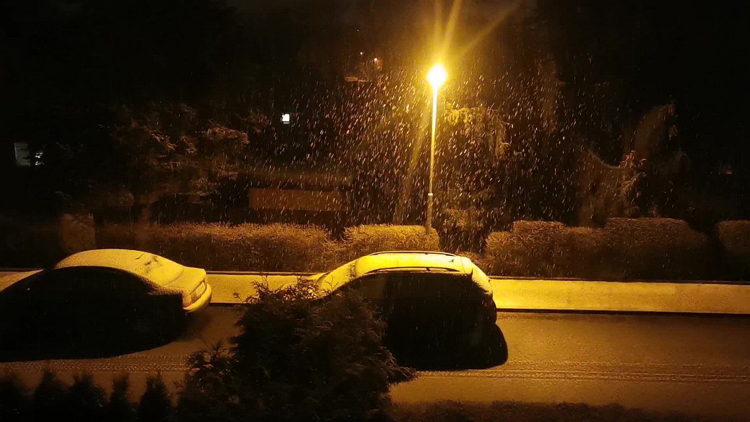 aktuálně několikrát blesk + hrom, bouřka, chumelenice sněhu s deštěm, 19:12 hřmí v dáli
