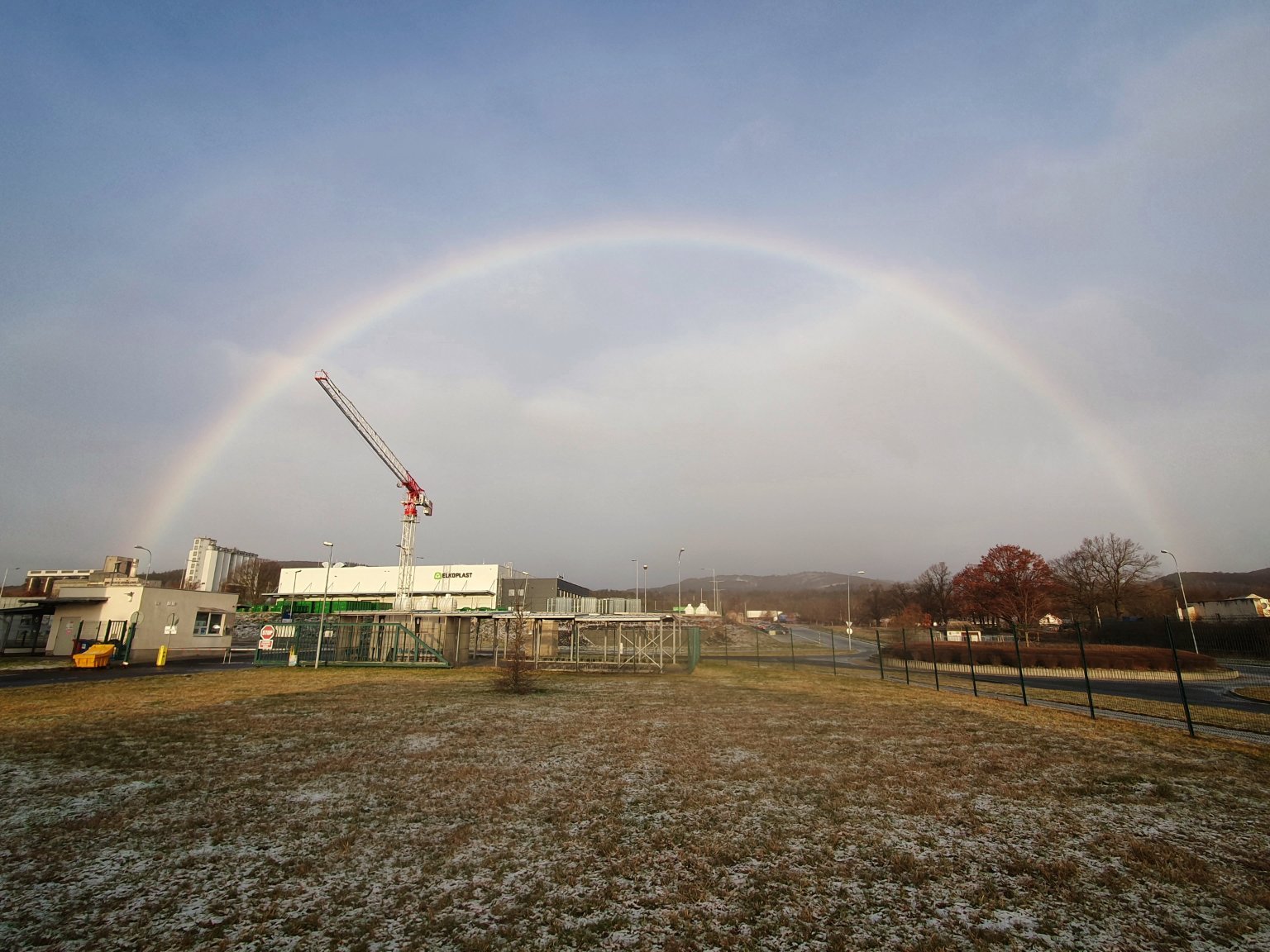 Drobně sněží, oblačnost 100%, tlak 1011,11hPa→, poc.teplota -5,41°C, tepl.ros.bodu -0,81°C, rel.vlhkost 90,9%, abs.vlhkost 4,55g/m3, dosti čerstvý SZ vítr 326° 6,51m/s(4 Bft), včerejší průměrná teplota 1,77°C, délka dne 09:28:01, sluneční záření 19W/m2.