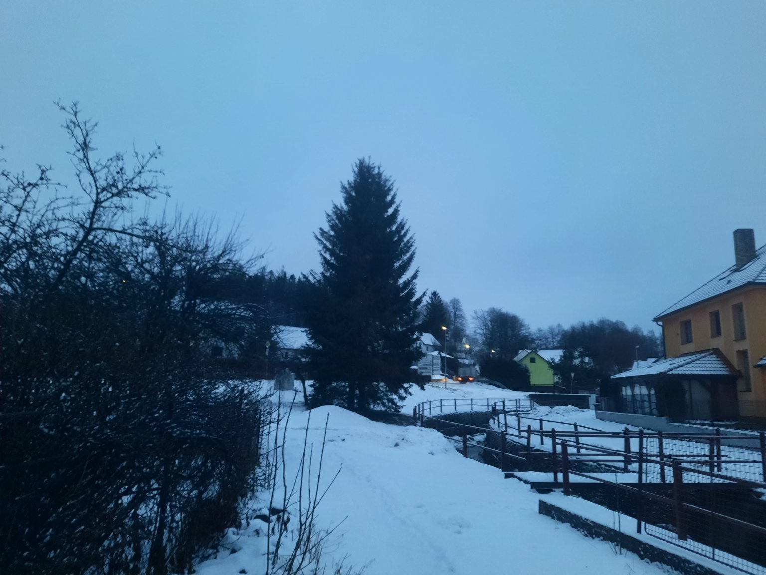 zataženo slabé sněžení