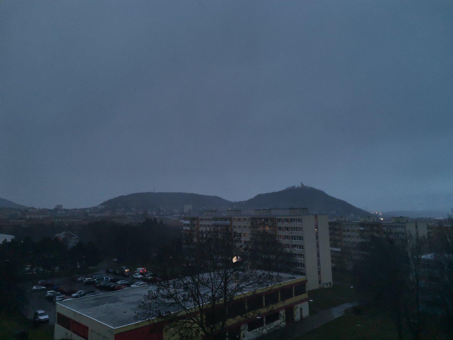 Přešla výrazná oblačnost , i s hromem a silným větrem, nyní jen slabý SZ vítr, teplota klesla za 10 min o 1.5°