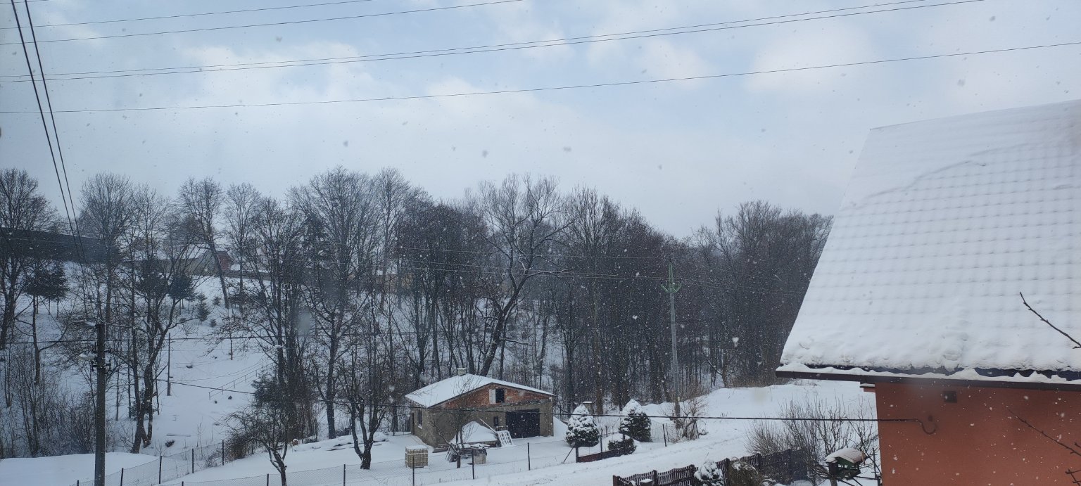 Oblačno až skoro zamračené, slabá snehová prehánka