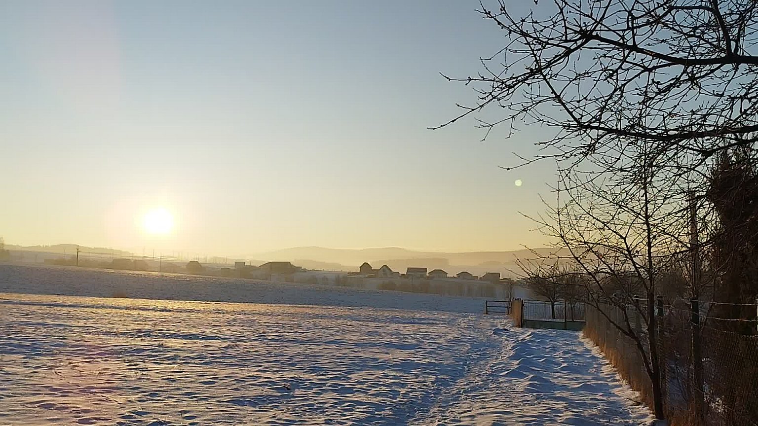 Skoro jasno, bezvětří. Vlhkost 92%. Min T dnes -8,7°C