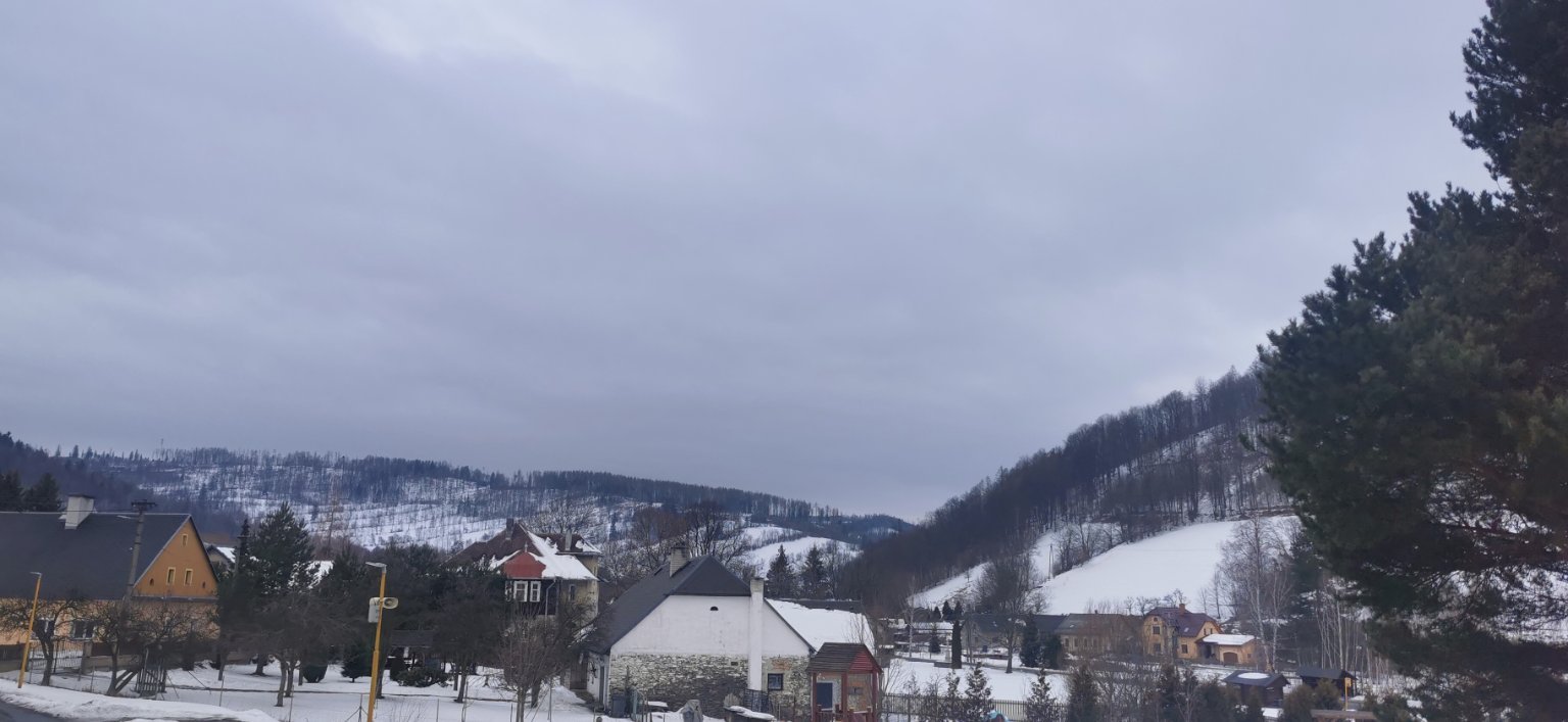 -°C, Zataženo, Sníh: 44 cm. Hezky zasněženy les a skladiště dřeva.
