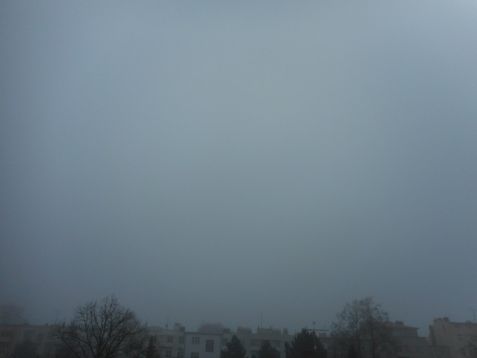 Oblačno až skoro zataženo. Vítr 1 m/s proměnlivý. Vlhkost 90%. Min T dnes 6,0°C