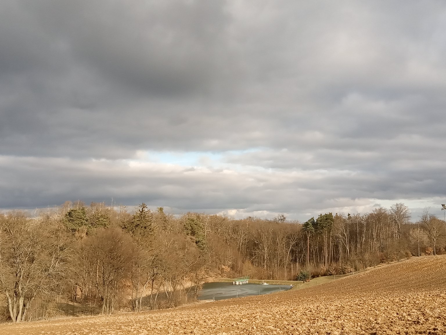 Dneska je na únor opravdu teplo. Vane slabý severovýchodní vítr, tlak: 1036hPa.