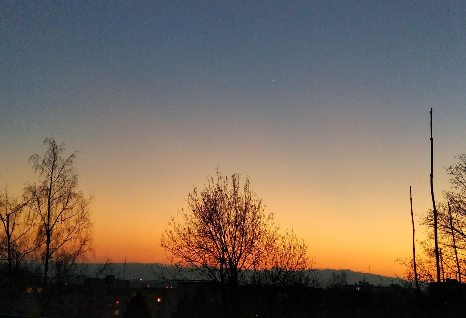 4,9°C, Jasno, Sníh: nesouvislý. Timelapse soumraku.
