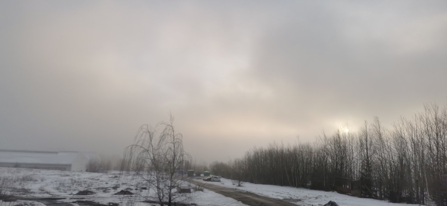 Zataženo, mlha, klidno, tlak 1027 hPa.