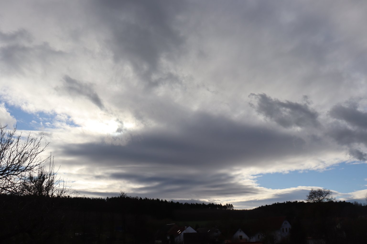 Odpoledne tu setrvávala poměrně dlouho zajímavá oblačnost - souhra stratocumulů vlivem dynamického proudění v nižší atmosféře. Občas se do toho přidal i ojedinělý cumulus.