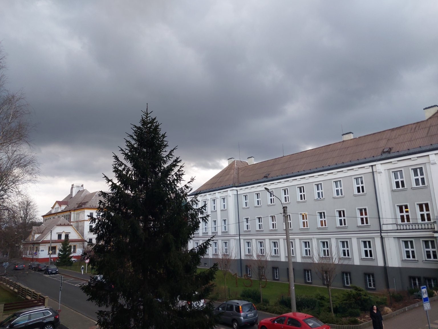 10,7°C, Oblačno, Sníh: 0 cm. Fajně černa oblačnost, přijemně teploučko jako na Jaře.