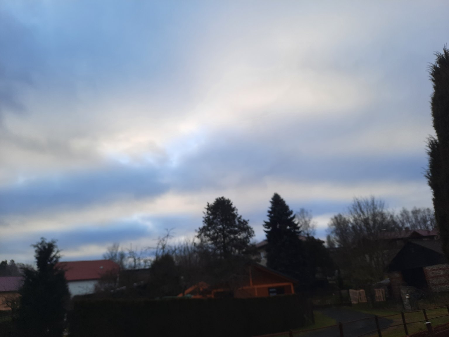 Tlak 1018,2 hPa, slabý SSZ vítr. Noční minimum 2,3°C.