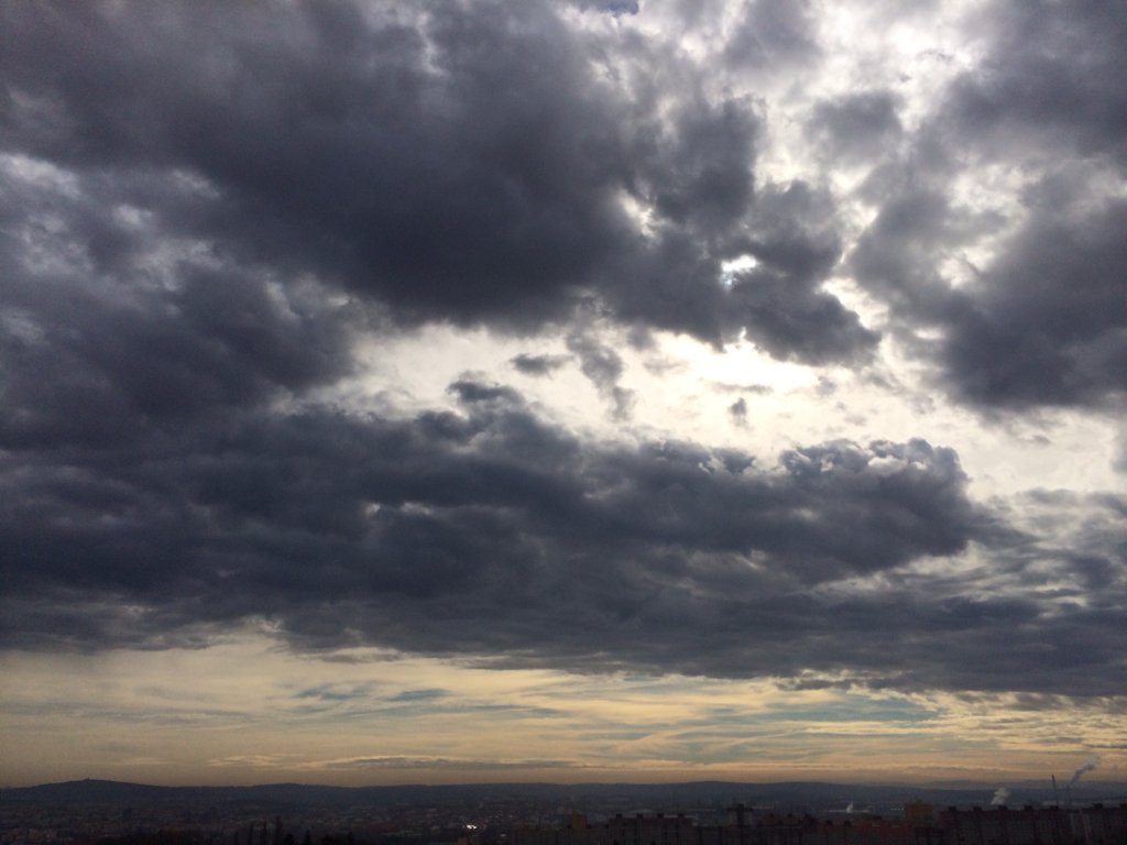 Mírný vítr,tlak 1007hPa,vlhkost 64%.Zesílil vítr,oblačnost ubyla.