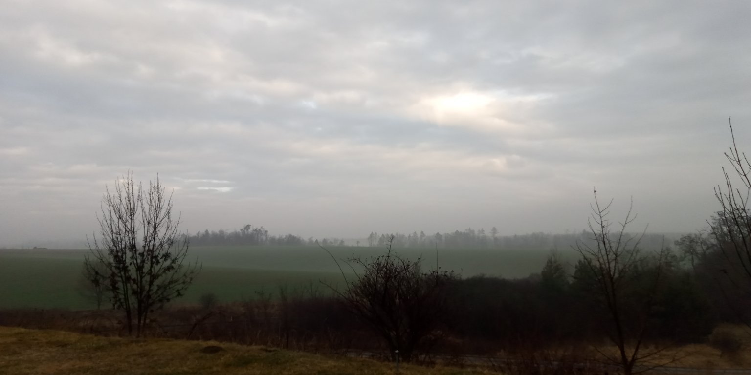 V noci slabé srážky, tlak 1008,7 hPa, slabý Z vítr.