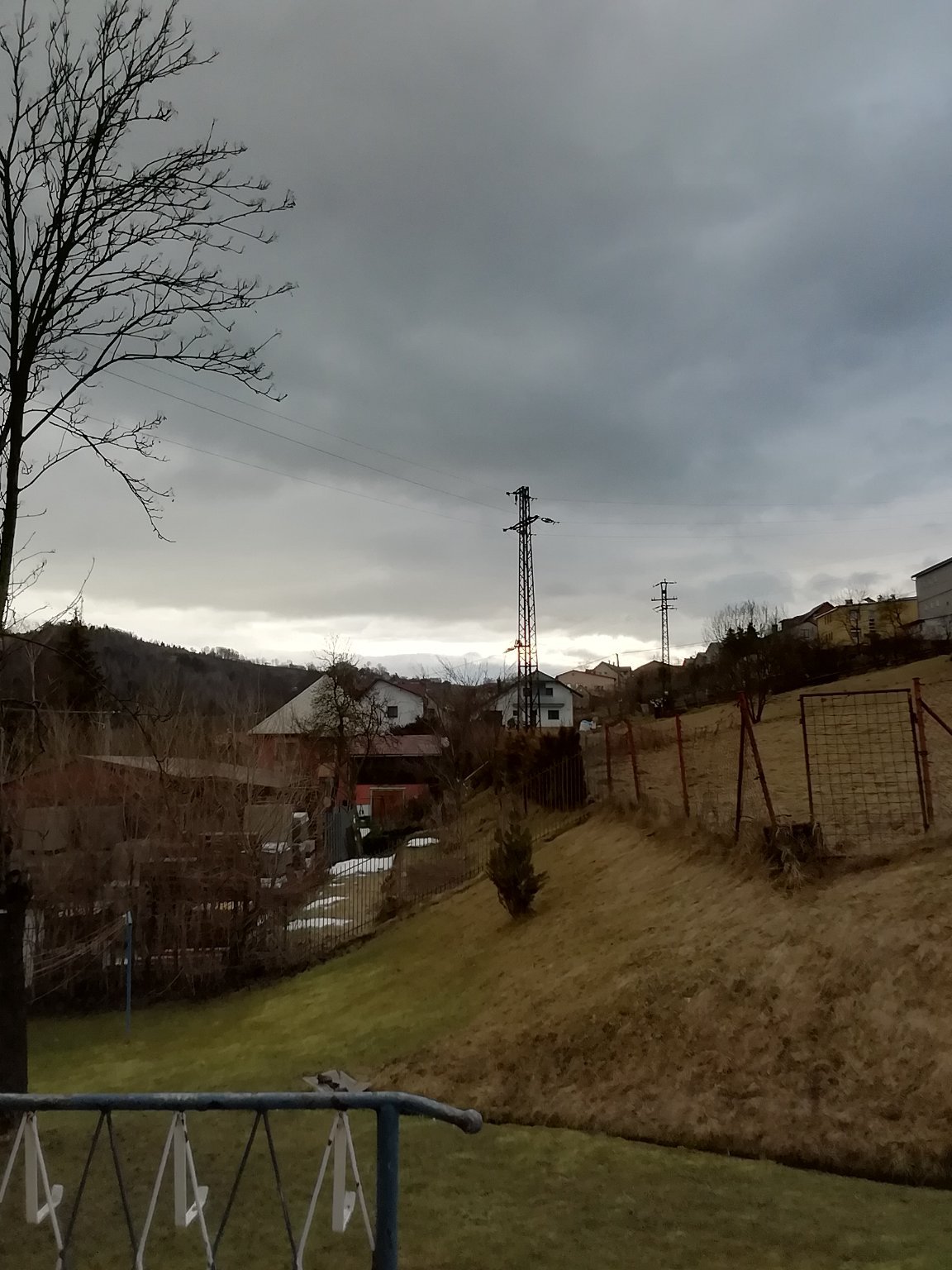 Sněhová přeháňka netrvala dlouho. Tlak 993 hPa.