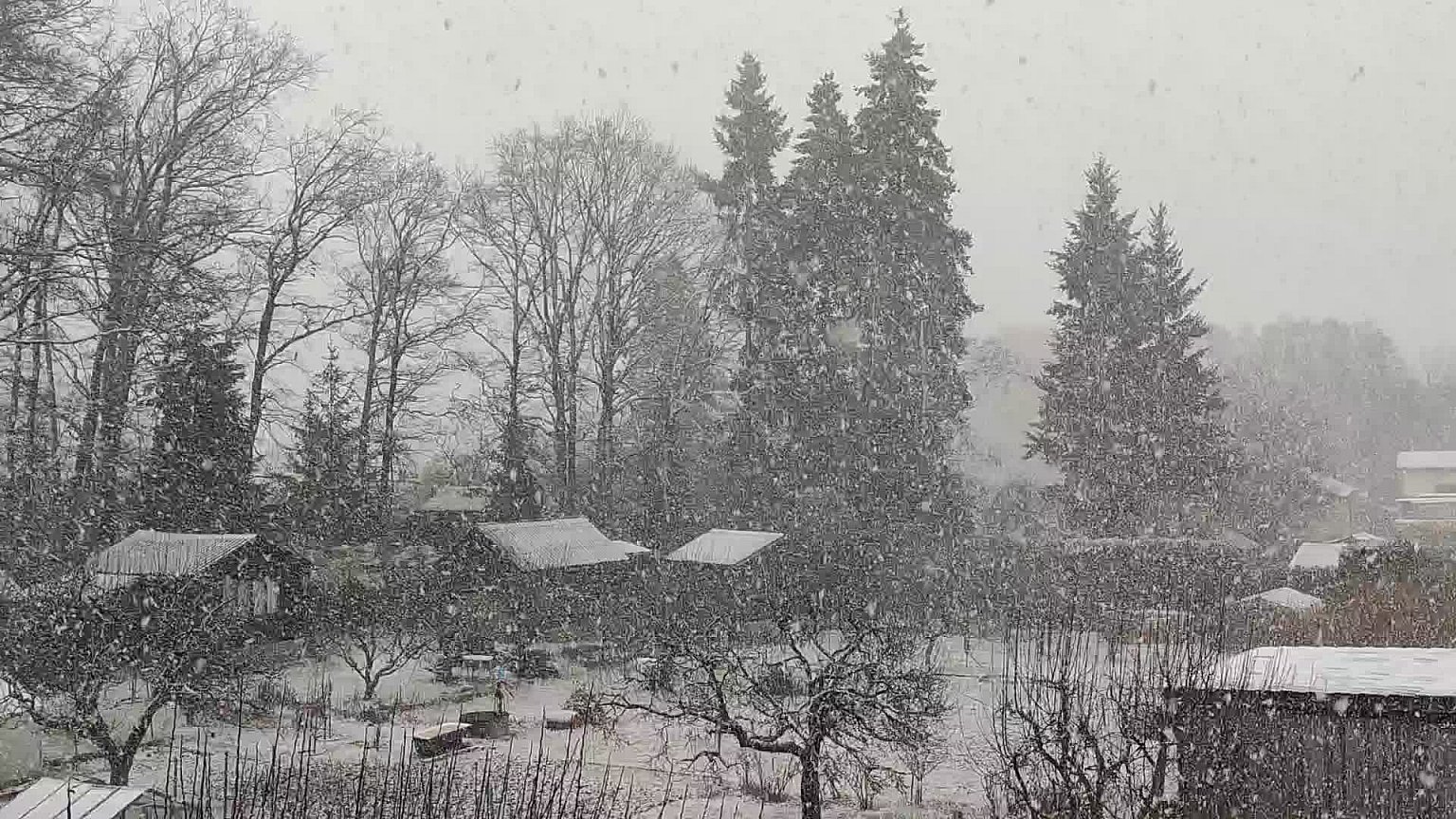 Skoro zataženo, po slabé dešťové přeháňce. Vítr 1,5 m/s JZ. Vlhkost 83%