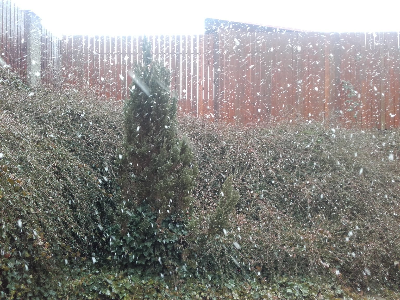 3,3°C, Slabá až mírná sněhova přehaňka, Sníh: 0 cm. Přihnala se sněhova přehaňka.