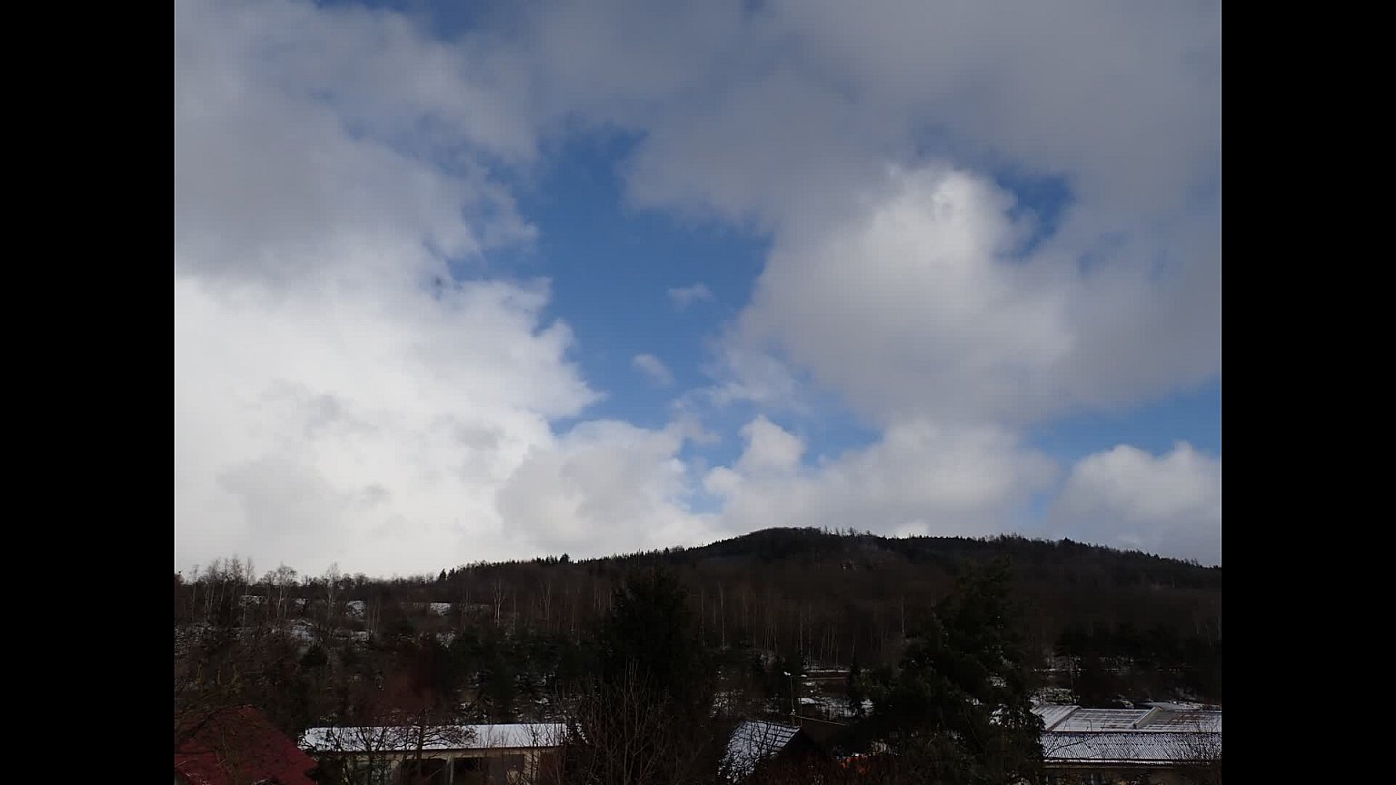 Od SV přibývají zatím spíš slabší přeháňky, tlak 1015,7 hPa, SV vítr 3-6 m/s.