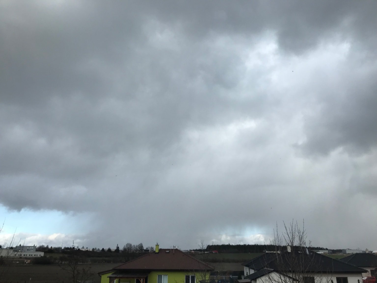 -0,2°C, Zataženo, zanedbatelna sněhova přehaňka, Sníh: nesouvislý. Chumelenice v dálce!