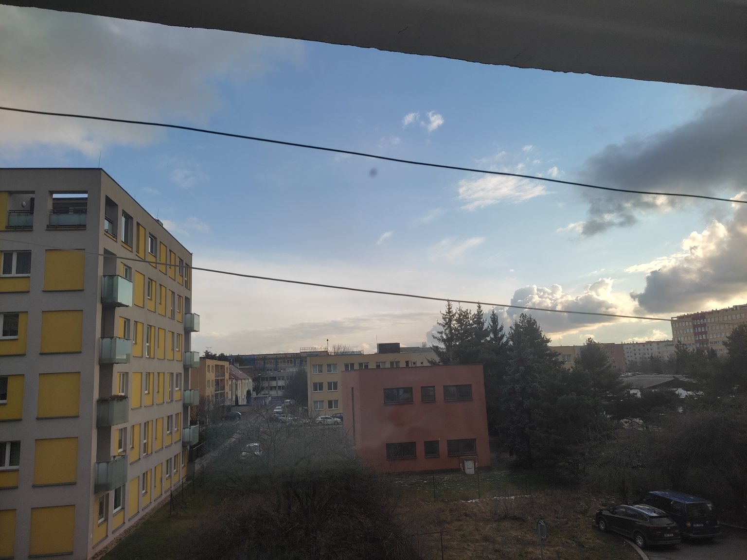 Oblačno, občasné sněhové přeháňky, severní větřík, tlak 1027 hlPa.