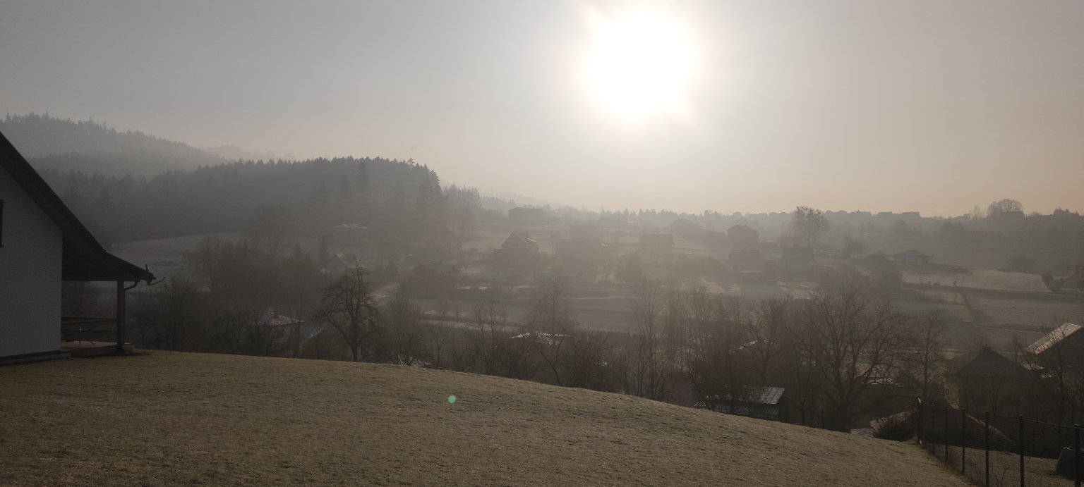 -2,6°C, Polojasno, Zanedbatelna mlha, Sníh: 0 cm. Od S se bliži Stratus...? Naštěsti od Olomouce už je hezky.
