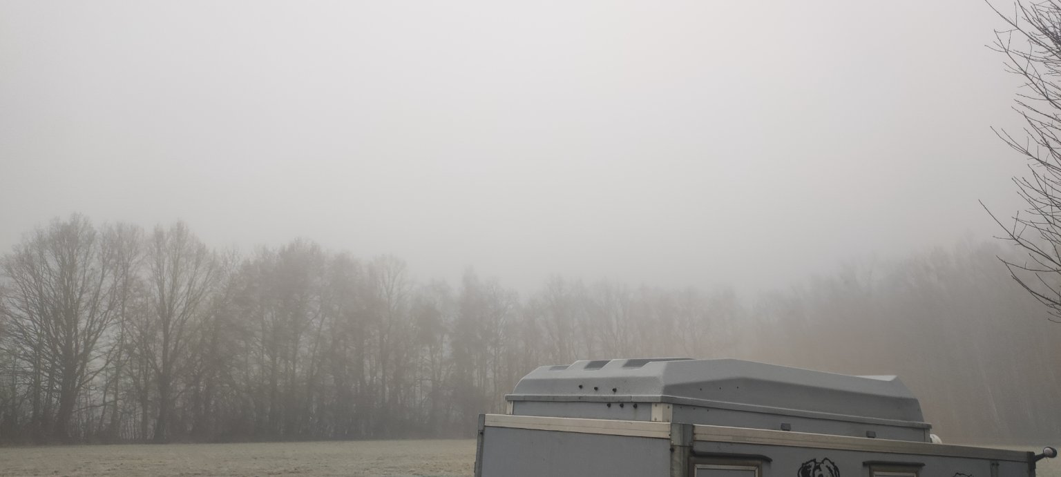 -1°C, Silná mlha, Sníh: 0 cm. Mlha vyrazně zesiluje!