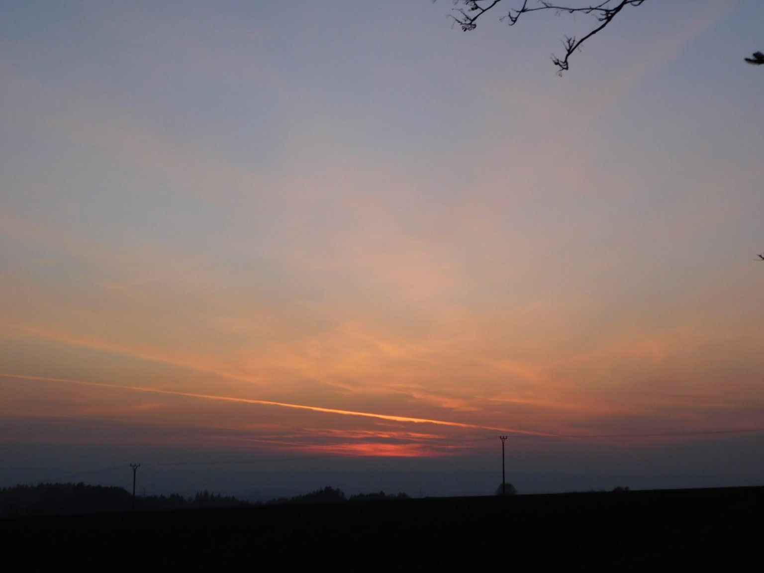 západ Slunce, vysoká oblačnost, S slabý vítr
