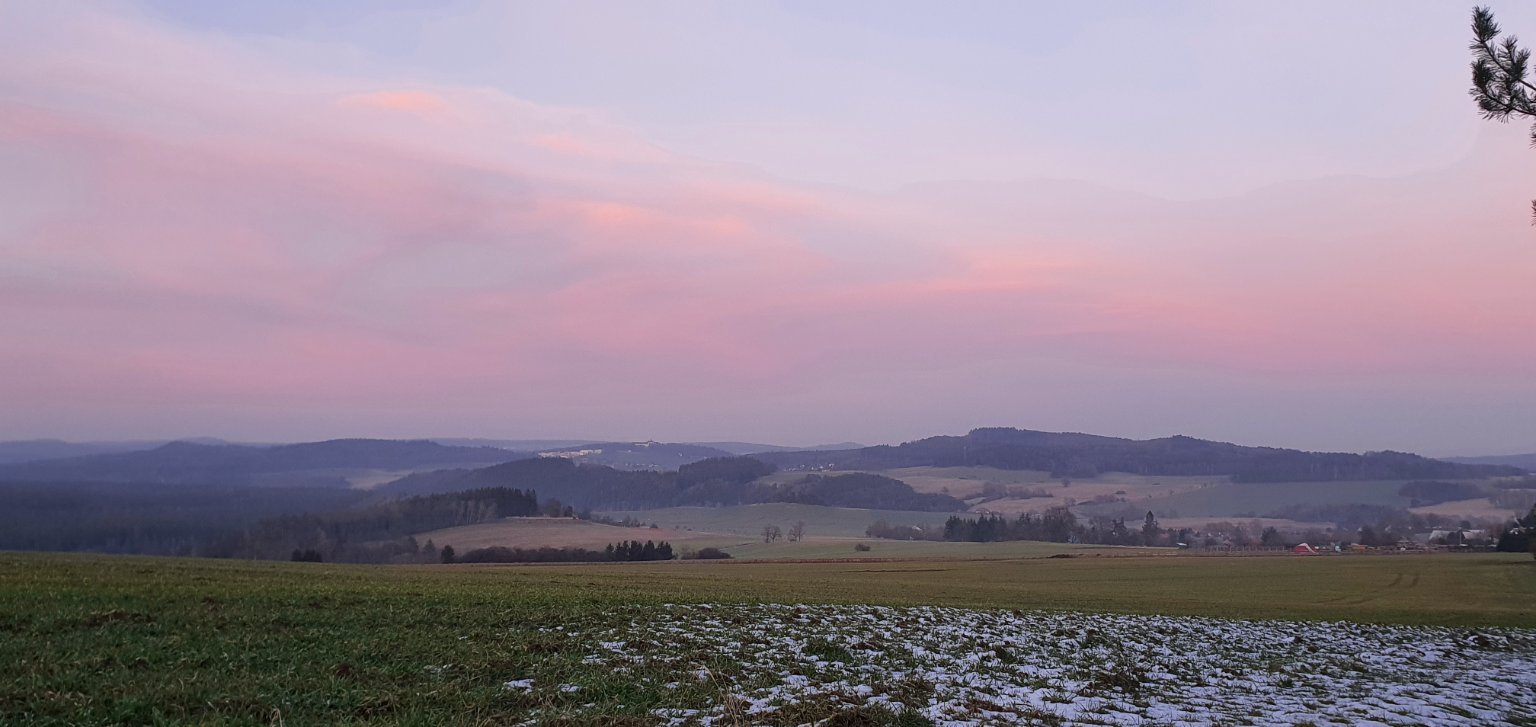 Slabý vítr, tlak 1021 hPa, vlhkost 84%