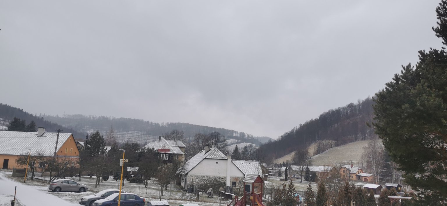 -°C, Zataženo, Sníh: nesouvislý. Přes noc napadl drobný poprašek. U nás doma ale chumelí.