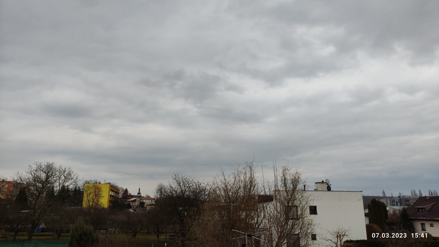 Aktuálně: Oblačno, celý den větrno. Teplota: 7.7°C Pocitová teplota: 4°C, Rosný bod: -2.6°C, Vlhkost: 47%, Tlak: 998.7 hPa (klesá), Oblačnost: 6/8, Rychlost větru: 23 km/h (mírný vítr), Nárazy větru: 30 km/h (čerstvý vítr), Maximální denní náraz větru: 36 km/h (čerstvý vítr), Směr větru: JZ, Sluneční záření: 90.69 W/m2, UV index: 0, Východ slunce: 6:31, Západ slunce: 17:51