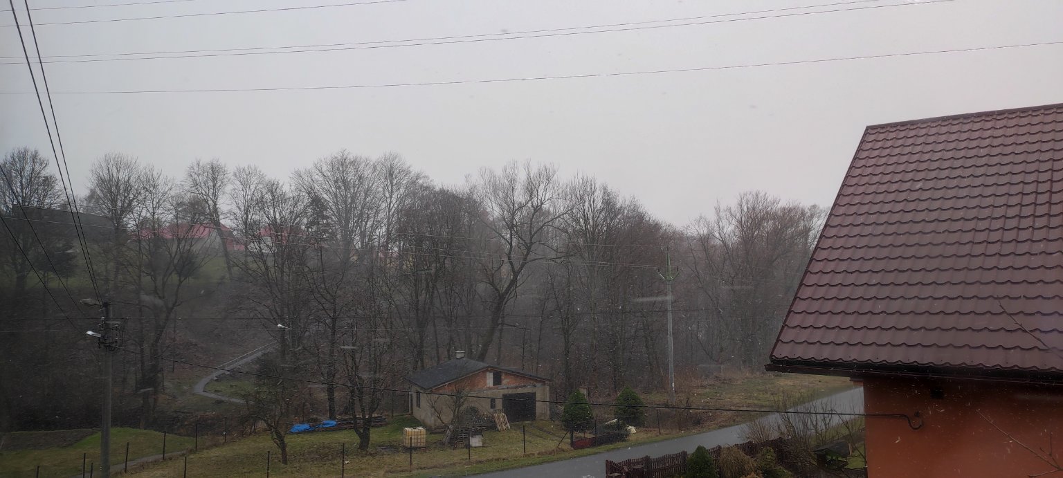 Zamračené, slabé sneženie